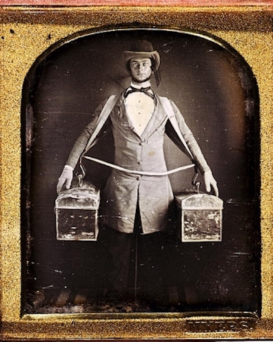 picture of bearded, dark-clothed Jewish men peddling wares in