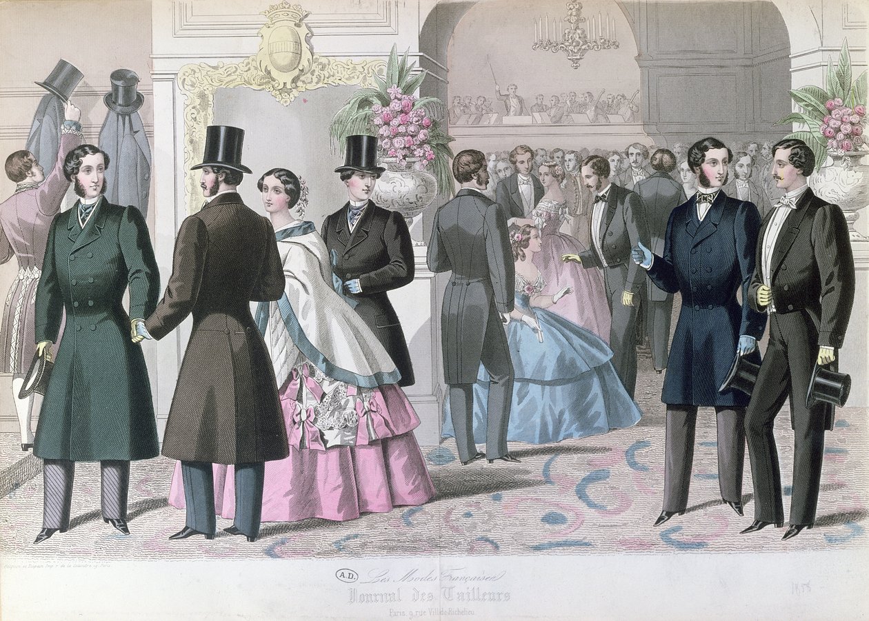 Soirée Mondaine, 1858 color engraving by a French artist.