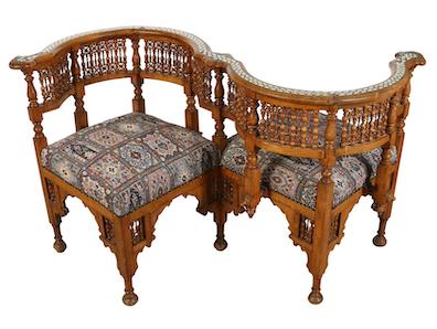 Another tête-à-tête chair, this one manufactured in Morocco in