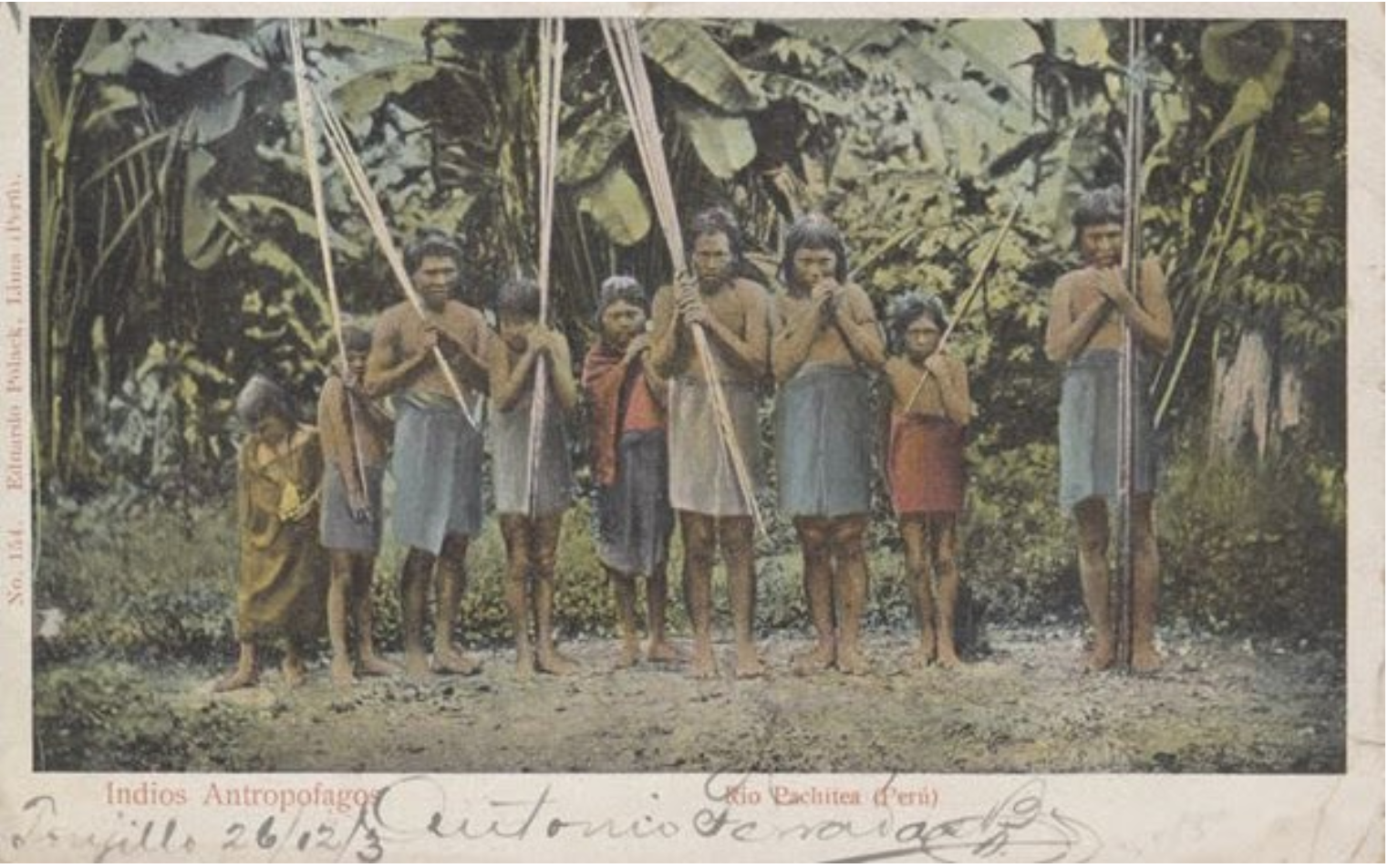 that reads, "Indios Antropofagos of Rio Pachitea (Perú)."