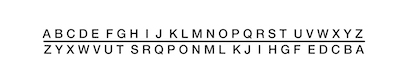code created by laying out two alphabetic lines, forward and
