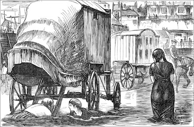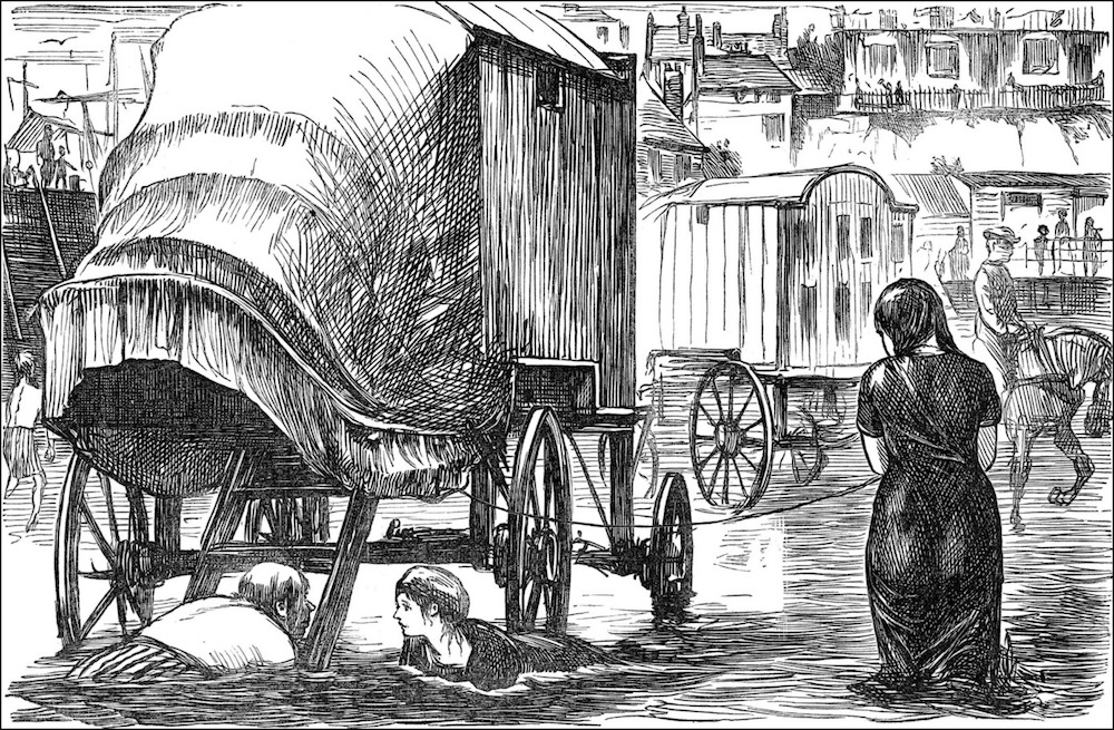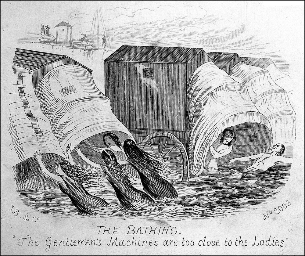 horse-drawn "bathing machines" that enabled people to enter